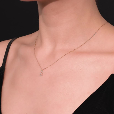 Шейное укр. с 21 бриллиантом природным, 0.06 карат, огранка круг 17 граней, цвет 2, чистота 3; Желтое золото 585 пробы.