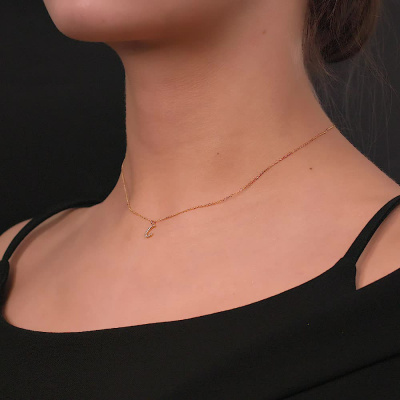 Шейное укр. с 14 бриллиантами природными, 0.04 карат, огранка круг 17 граней, цвет 2, чистота 3; Желтое золото 585 пробы.