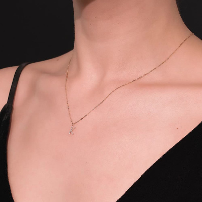 Шейное укр. с 19 бриллиантами природными, 0.05 карат, огранка круг 17 граней, цвет 2, чистота 3, тип огранки Б; Желтое золото 585 пробы.