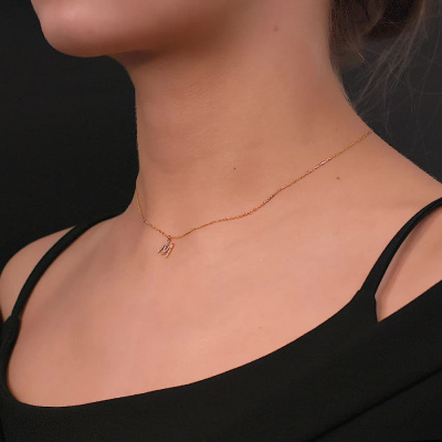 Шейное укр. с 25 бриллиантами природными, 0.07 карат, огранка круг 17 граней, цвет 2, чистота 3, тип огранки Б; Желтое золото 585 пробы.