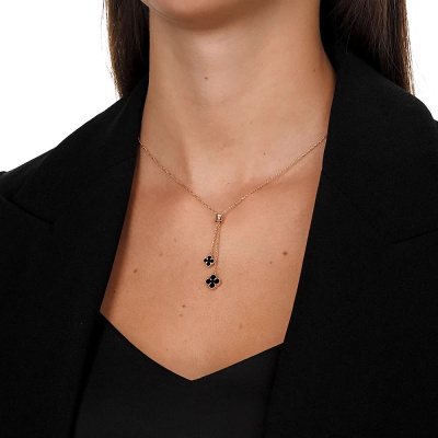Шейное укр. с 3 ониксами черными природными; Розовое золото 585 пробы.