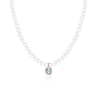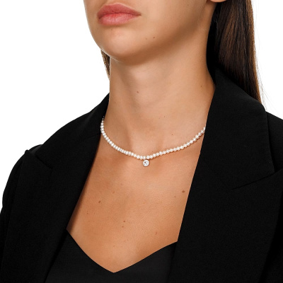 Шейное укр., вставка: жемчуг пресноводный культивированный белый; фианитом бесцветным; Розовое золото 585 пробы.