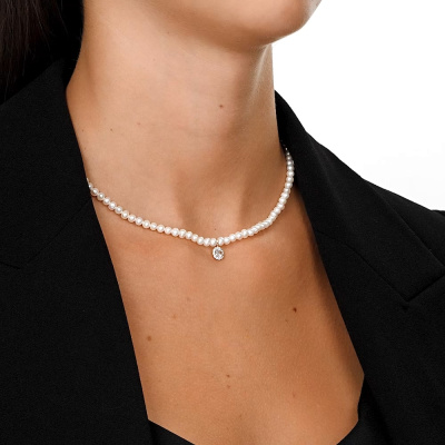 Золотое шейное украшение с жемчугом и фианитами