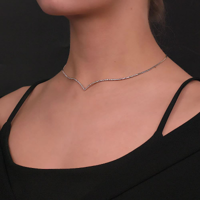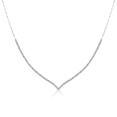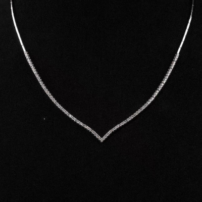 Шейное укр. с 81 бриллиантом природным, 1.2 карат, огранка круг 57 граней, цвет 3, чистота 6, тип огранки А; Белое золото 585 пробы.