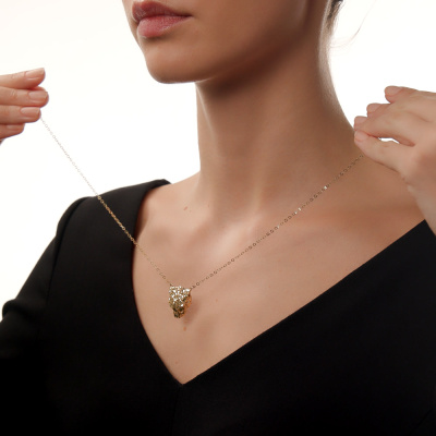 Шейное укр., вставка: эмаль зеленая; Желтое золото 585 пробы.