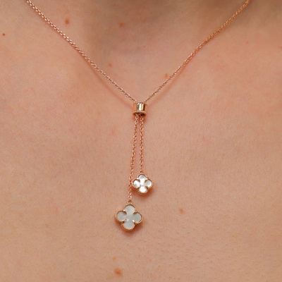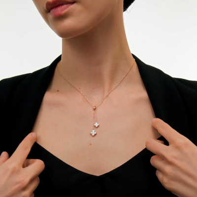 Шейное укр., вставка: перламутр белый; Розовое золото 585 пробы.