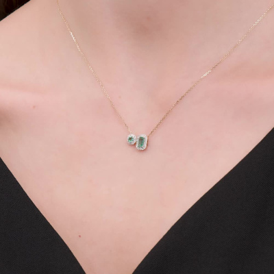 Золотое шейное украшение с бриллиантами природными и изумрудами природными