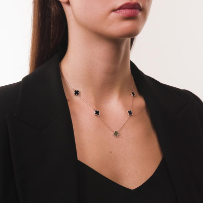 Шейное укр. с 5 агатами черными природными; Розовое золото 585 пробы.