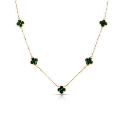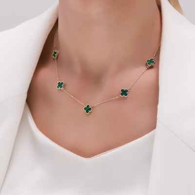 Шейное укр. с 5 малахитами; Желтое золото 585 пробы.