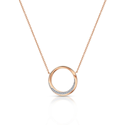 Шейное укр. с 11 бриллиантами природными, 0.04 карат, огранка круг 17 граней, цвет 2, чистота 2, тип огранки А; 4 бриллиантами природными, 0.008 карат, огранка круг 17 граней, цвет 2, чистота 2, тип огранки А; Розовое золото 585 пробы.