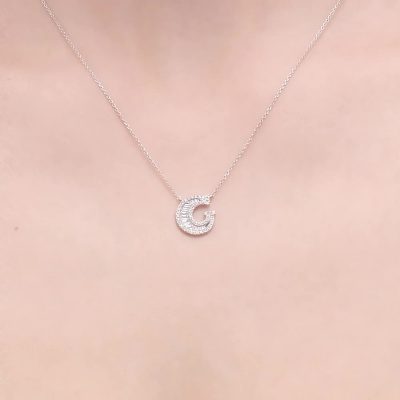 Шейное укр. с 7 бриллиантами выращенными, 0.11 карат, огранка багет 25 граней, цвет 3, чистота 5, тип огранки А; 2 бриллиантами выращенными, 0.01 карат, огранка круг 57 граней, цвет 3, чистота 5, тип огранки А; 3 бриллиантами выращенными, 0.01 карат, огранка круг 57 граней, цвет 3, чистота 5, тип огранки А; 46 бриллиантами выращенными, 0.12 карат, огранка круг 57 граней, цвет 3, чистота 5, тип огранки А; Белое золото 585 пробы.