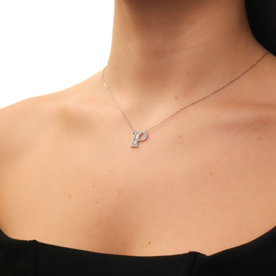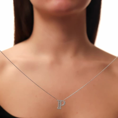 Шейное укр. с 9 бриллиантами выращенными, 0.14 карат, огранка багет 25 граней, цвет 3, чистота 5, тип огранки А; 44 бриллиантами выращенными, 0.11 карат, огранка круг 57 граней, цвет 3, чистота 5, тип огранки А; Белое золото 585 пробы.