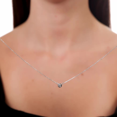 Серебряное шейное украшение с бриллиантом выращенным