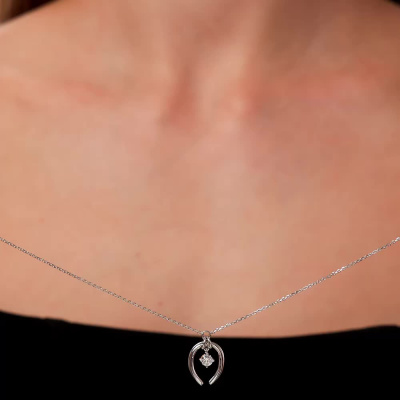 Шейное укр. с 1 бриллиантом выращенным, 0.26 карат, огранка круг 57 граней, цвет 3, чистота 5; Серебро 925 пробы.