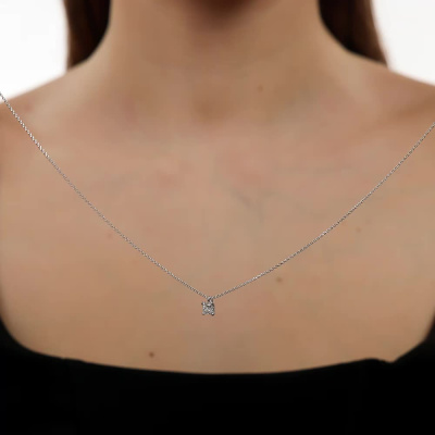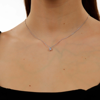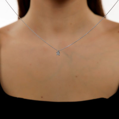 Шейное укр. с 1 бриллиантом выращенным, 0.57 карат, огранка принцесса 65 граней, цвет 4, чистота 5, тип огранки А; Белое золото 585 пробы.