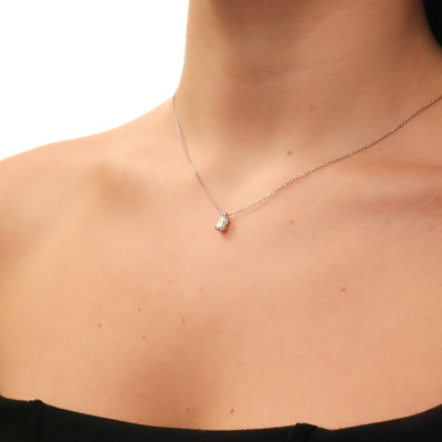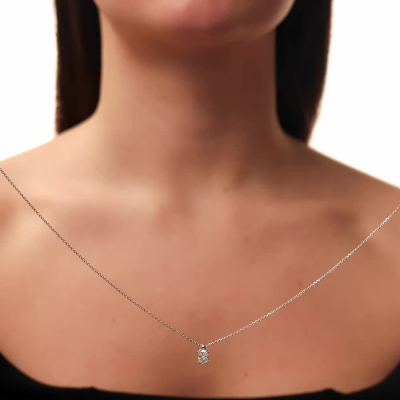 Шейное укр. с 1 бриллиантом выращенным, 0.54 карат, огранка кушон 57 граней, цвет 4, чистота 5, тип огранки А; Белое золото 585 пробы.