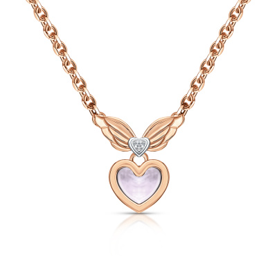 Шейное укр. с 1 бриллиантом природным, 0.009 карат, огранка круг 17 граней, цвет 2, чистота 2, тип огранки А; 1 перламутром белым природным; Розовое золото 585 пробы.