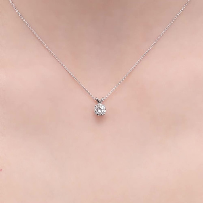 Шейное укр. с 1 бриллиантом выращенным, 0.93 карат, огранка круг 57 граней, цвет 3, чистота 6, тип огранки А; Белое золото 585 пробы.