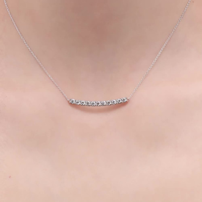 Шейное укр. с 11 бриллиантами выращенными, 1.16 карат, огранка круг 57 граней, цвет 3, чистота 6, тип огранки А; Белое золото 585 пробы.