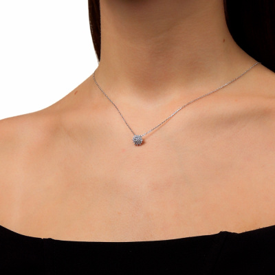 Шейное укр. с 19 бриллиантами выращенными, 0.28 карат, огранка круг 57 граней, цвет 2, чистота 5; Серебро 925 пробы.