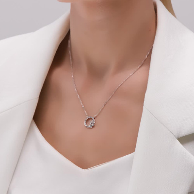 Шейное укр. с 25 бриллиантами природными, 0.1 карат, огранка круг 57 граней, цвет 3, чистота 6, тип огранки А; Белое золото 585 пробы.