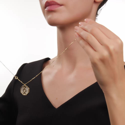 Шейное укр. с 1 перламутром белым природным; Желтое золото 585 пробы.