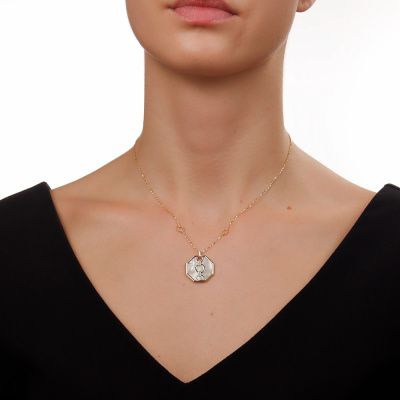 Золотое шейное украшение с перламутром природным