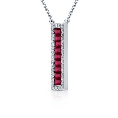 Шейное укр. с 34 бриллиантами природными, 0.27 карат, огранка круг 57 граней, цвет 3, чистота 5, тип огранки А; 9 рубинами природными, 1.28 карат, цвет 2, чистота 3, тип огранки Б; Белое золото 585 пробы.