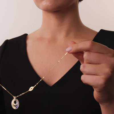 Золотое шейное украшение с перламутром природным и перламутрами имитациями