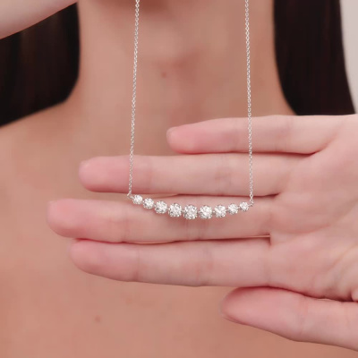Шейное укр. с 1 бриллиантом выращенным, 0.25 карат, огранка круг 57 граней, цвет 3, чистота 5, тип огранки А; 2 бриллиантами выращенными, 0.43 карат, огранка круг 57 граней, цвет 3, чистота 5, тип огранки А; 2 бриллиантами выращенными, 0.32 карат, огранка круг 57 граней, цвет 3, чистота 6, тип огранки А; 2 бриллиантами выращенными, 0.21 карат, огранка круг 57 граней, цвет 3, чистота 5, тип огранки А; 2 бриллиантами выращенными, 0.15 карат, огранка круг 57 граней, цвет 3, чистота 5, тип огранки А; Белое золото 585 пробы.