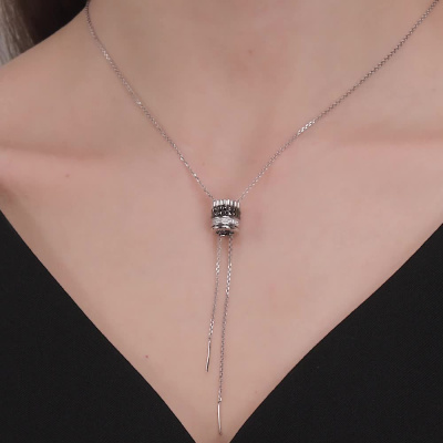Шейное укр. с 15 бриллиантами природными, 0.22 карат, огранка круг 57 граней, цвет 3, чистота 6, тип огранки А; Белое золото 585 пробы.