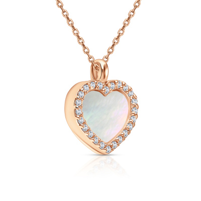 Шейное укр. с 24 бриллиантами природными, 0.09 карат, огранка круг 17 граней, цвет 2, чистота 2, тип огранки А; 1 перламутром белым природным; Розовое золото 585 пробы.