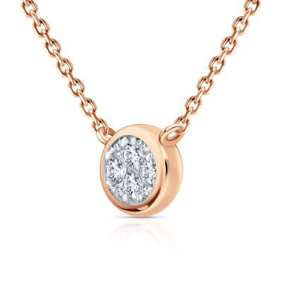 Шейное укр. с 4 бриллиантами природными, 0.07 карат, огранка круг 57 граней, цвет 3, чистота 6, тип огранки А; 4 бриллиантами природными, 0.01 карат, огранка круг 57 граней, цвет 3, чистота 6, тип огранки А; Розовое золото 585 пробы.