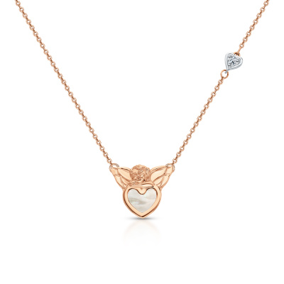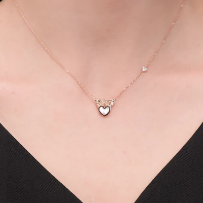Шейное укр. с 1 сапфиром бесцветным природным, 0.02 карат; 1 перламутром белым природным; Розовое золото 585 пробы.