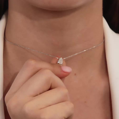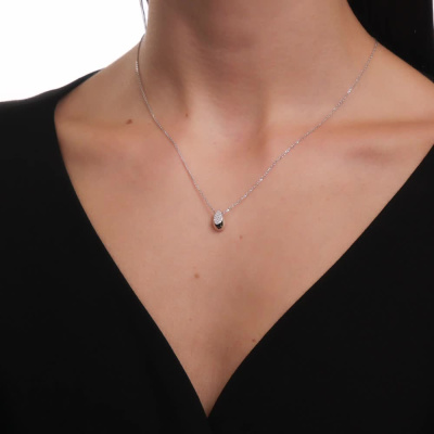 Шейное укр. с 18 бриллиантами природными, 0.06 карат, огранка круг 17 граней, цвет 3, чистота 3, тип огранки Б; Серебро 925 пробы.