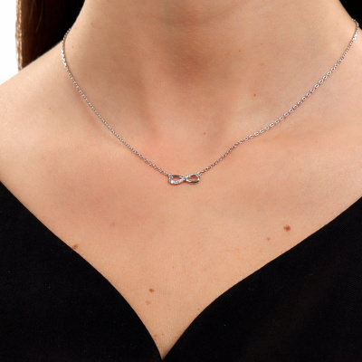 Шейное укр. с 9 бриллиантами природными, 0.02 карат, огранка круг 17 граней, цвет 3, чистота 3, тип огранки Б; Серебро 925 пробы.