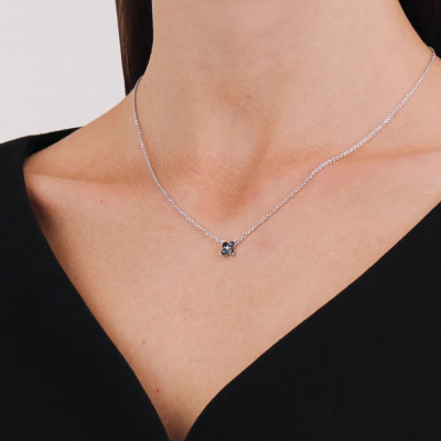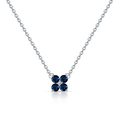 Шейное укр. с 1 бриллиантом природным, 0.008 карат, огранка круг 57 граней, цвет 3, чистота 6, тип огранки А; 4 сапфирами природными, 0.4 карат, цвет 2, чистота 2, тип огранки В; Белое золото 585 пробы.