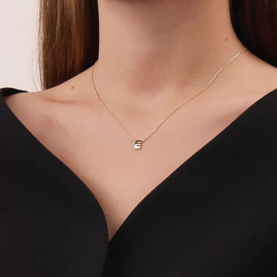 Шейное укр. с 1 бриллиантом природным, 0.005 карат, огранка круг 17 граней, цвет 2, чистота 2, тип огранки А; Желтое золото 585 пробы.