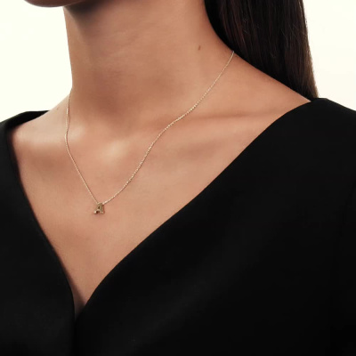 Шейное укр. с 1 бриллиантом природным, 0.005 карат, огранка круг 17 граней, цвет 2, чистота 2, тип огранки А; Желтое золото 585 пробы.