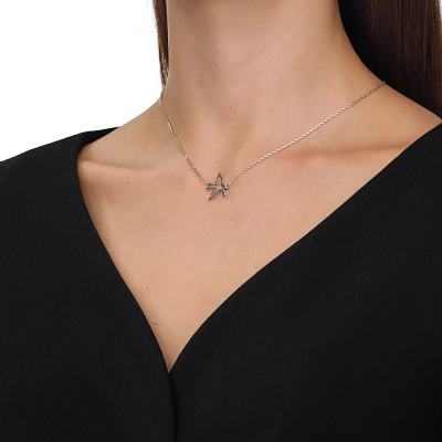Шейное укр. с 1 бриллиантом природным, 0.003 карат, огранка круг 17 граней, цвет 3, чистота 3, тип огранки Б; Серебро 925 пробы.