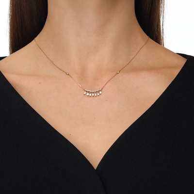 Шейное укр. с 7 бриллиантами природными, 0.38 карат, огранка багет 33 грани, цвет 3, чистота 4, тип огранки А; 16 бриллиантами природными, 0.13 карат, огранка круг 57 граней, цвет 3, чистота 6, тип огранки А; Желтое золото 585 пробы.