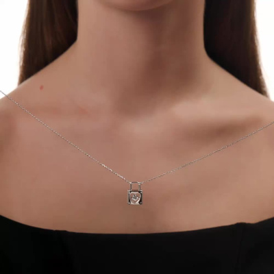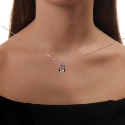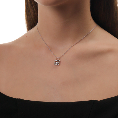 Шейное укр. с 1 бриллиантом выращенным, 0.26 карат, огранка круг 57 граней, цвет 3, чистота 5; 4 бриллиантами выращенными, 0.01 карат, огранка круг 57 граней, цвет 3, чистота 5; Серебро 925 пробы.