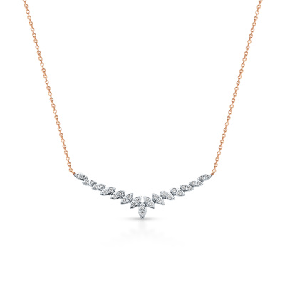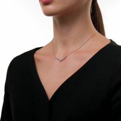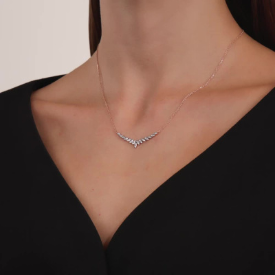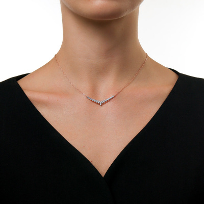Шейное укр. с 18 бриллиантами природными, 0.12 карат, огранка круг 57 граней, цвет 3, чистота 6, тип огранки А; 12 бриллиантами природными, 0.05 карат, огранка круг 17 граней, цвет 2, чистота 2, тип огранки А; Розовое золото 585 пробы.