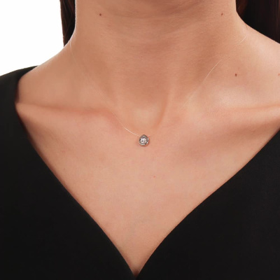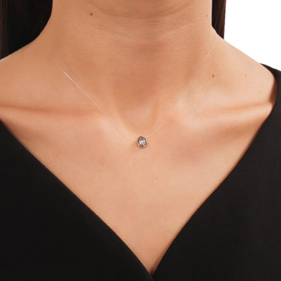 Шейное укр. с 1 бриллиантом природным, 0.007 карат, огранка круг 17 граней, цвет 3, чистота 3, тип огранки Б; леска; Серебро 925 пробы.
