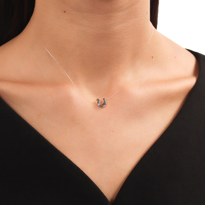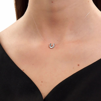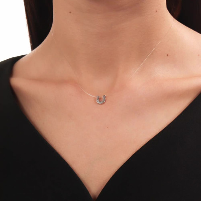 Шейное укр. с 1 бриллиантом природным, 0.007 карат, огранка круг 17 граней, цвет 3, чистота 3, тип огранки Б; леска; Серебро 925 пробы.