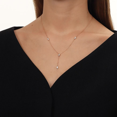 Шейное укр. с 36 бриллиантами природными, 0.14 карат, огранка круг 17 граней, цвет 2, чистота 2, тип огранки А; Розовое золото 585 пробы.