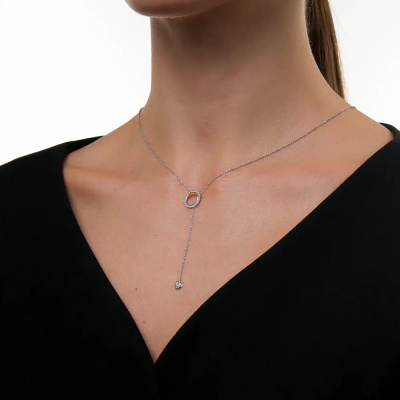 Шейное укр. с 37 бриллиантами природными, 0.17 карат, огранка круг 17 граней, цвет 2, чистота 2, тип огранки А; Белое золото 585 пробы.