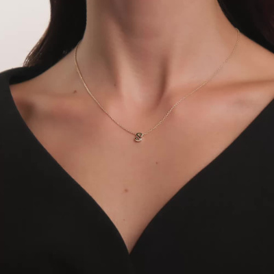 Шейное укр. с 1 бриллиантом природным, 0.005 карат, огранка круг 17 граней, цвет 2, чистота 2, тип огранки А; Желтое золото 585 пробы.