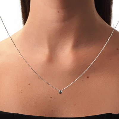 Шейное укр. с 1 бриллиантом выращенным, 0.22 карат, огранка круг 57 граней, цвет 3, чистота 5, тип огранки А; Белое золото 585 пробы.
