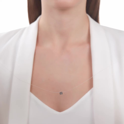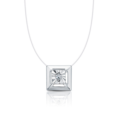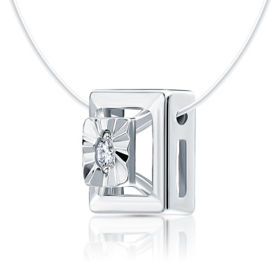 Шейное укр. с 1 бриллиантом природным, 0.007 карат, огранка круг 17 граней, цвет 3, чистота 3, тип огранки Б; леска; Серебро 925 пробы.